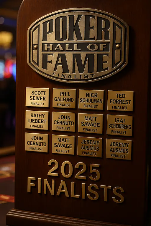 Ruim een maand geleden opende de World Series of Poker (WSOP) het stemproces voor de Poker Hall of Fame Class van dit jaar. In juni werd de lijst met tien finalisten gepubliceerd. Naast bekende namen zoals Ted Forrest, Kathy Liebert, Mike Matusow, Matt Savage, Isai Scheinberg en Jeremy Ausmus, maken nieuwkomers als Scott Seiver, Phil Galfond en Nick Schulman hun opwachting. Ook “Miami” John Cernuto is opnieuw genomineerd, terwijl andere vaste namen hun hoop op een plek behouden.