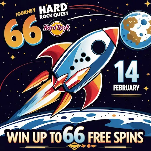 Doe mee aan de Hard Rock Journey to The Moon Quest tot 14 februari en maak kans op maximaal 66 gratis spins op populaire online gokkasten. Ontdek hoe je eenvoudig kunt deelnemen en direct je winsten kunt laten uitbetalen.