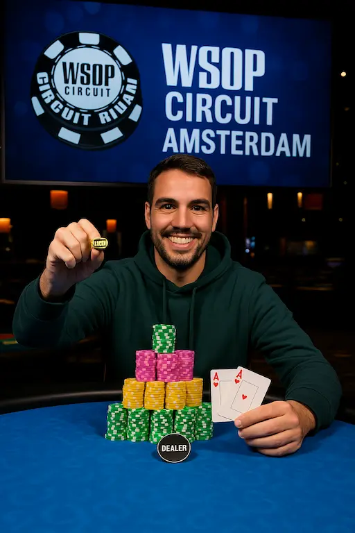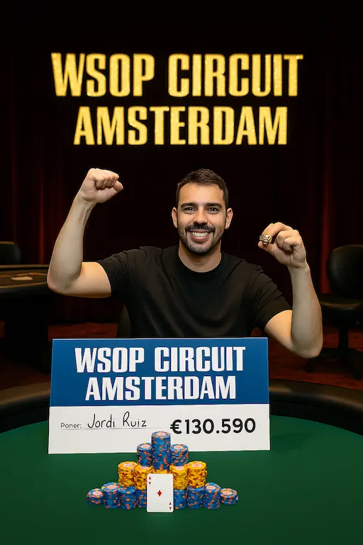 De WSOP Circuit Amsterdam is afgesloten met een spectaculaire overwinning voor Jordi Ruiz, die zich vrijdag tot kampioen van het € 1.100 Main Event kroonde. Met een indrukwekkende prestatie liet hij 1.504 tegenstanders achter zich en nam hij naast de felbegeerde WSOP Circuit-ring ook een bedrag van € 130.590 mee naar huis. Runner-up Max Broens, die tijdens het toernooi lange tijd de chiplead in handen had, verdiende met zijn tweede plek € 120.000. Het evenement vond plaats in het Holland Casino Amsterdam, waar op zaterdag de serie officieel werd afgesloten.